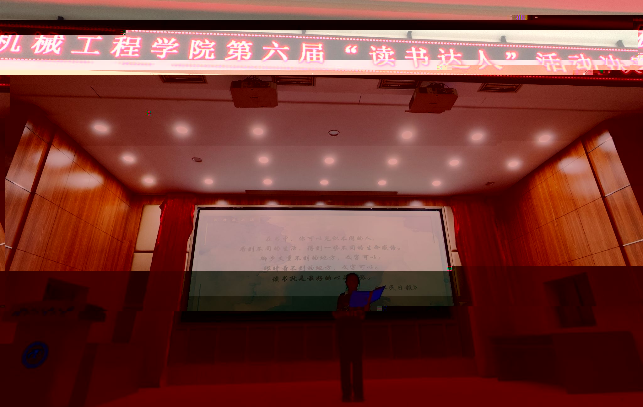 本次活動專門選取“成長過程中對你影響最大的一本好書”作為分享主題,經過學院初賽,共有來自7個班級的10位選手脫穎而出。10位選手經過前期準備、凝練挖掘、系統培訓,場上,他們娓娓道來,既分享了書中的核心價值和動人故事,也訴說着他們閱讀後的思考收獲和成長感悟,機器人專業李思琪分享了《你當像鳥飛過你的山》,通過作者傳奇的人生故事,鼓勵讀者主動掙脫束縛,勇于通過接受教育實現自我提升,達到人生彼岸;機械專業李宗盛分享的書籍為《少有人走過的路》,他認為自律、愛、教育與信仰是一個人心靈成熟的必備要素,要敢于尋找真正的自我;測控專業的周雨珩君和程怡君搭檔分享,默契配合,書中描寫的風中舞蹈流動的陽光,細長規整的小街,以及母親無言的傷心,書中的每種意向仿佛都在訴說着生的歡愉,飽含作者對親情的深情讴歌,用深情的筆觸展現了一個絕望的人尋求希望的過程,也讓史鐵生的這本《我與地壇》深深打動了在場觀衆。機械專業程劉宇分享的書籍為《天才基本法》,男女主人公在數學推理和雙時空交互中認識自我、找尋自我。